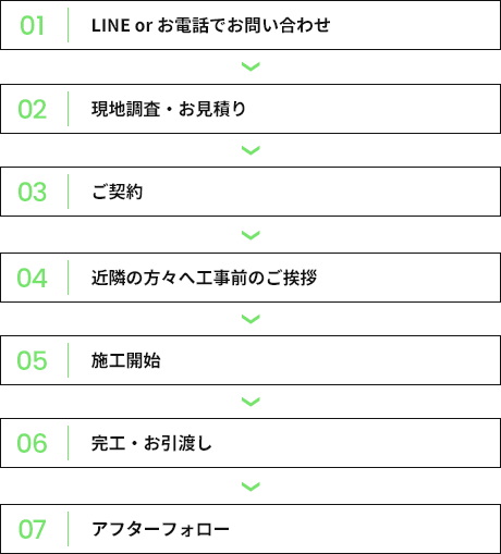 当方では工事を行ううえで、お客様のご要望に最大限応えることを第一に考え、常にお客様ファーストな対応を心掛けております。